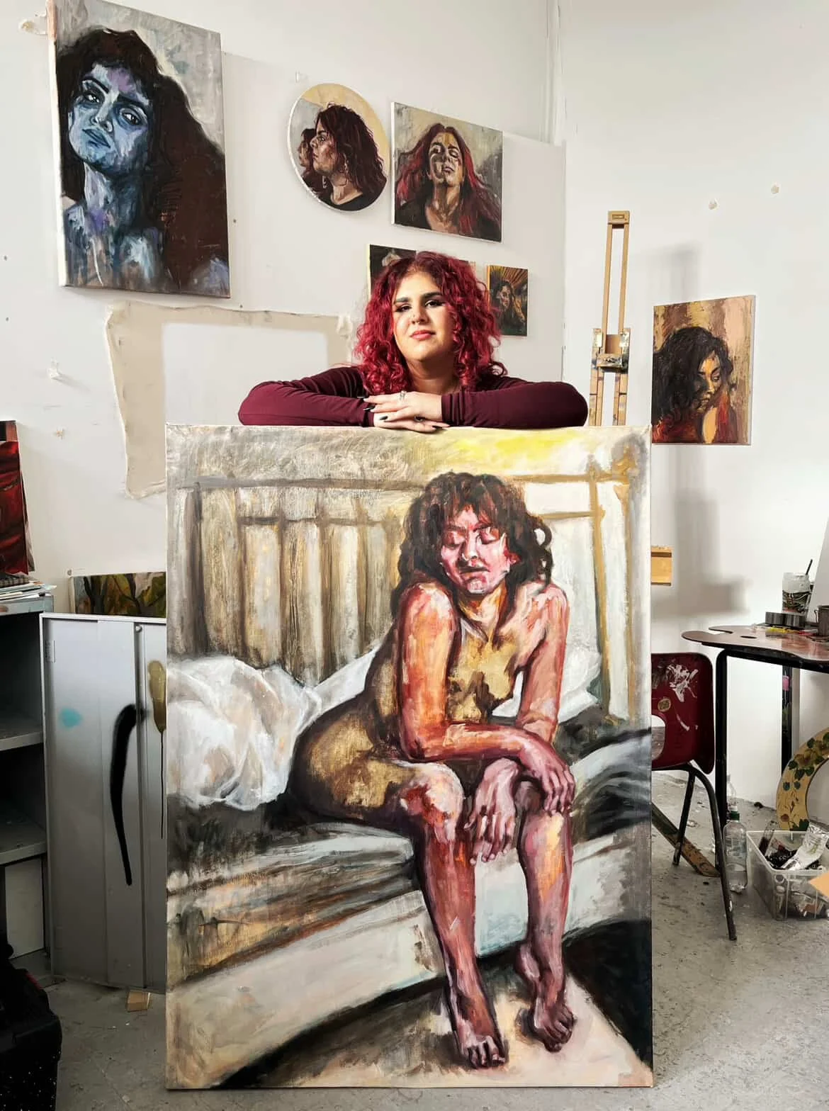 Her practice continues to evolve through material experimentation, critical research, and sustained studio discipline, positioning painting as both a personal and political act.